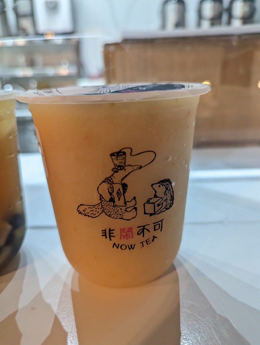 The atmosphere inside Now Tea tends to be cozy and casual, with a layout that encourages lingering—there’s ample seating scattered around which makes it practical not just for quick takeout, but for hanging out or even studying, as long as you're prepared for a noticeably warm and slightly humid environment. The music vibe alternates between Mandopop and upbeat EDM, adding a gentle buzz that keeps things lively without overpowering conversation or concentration.